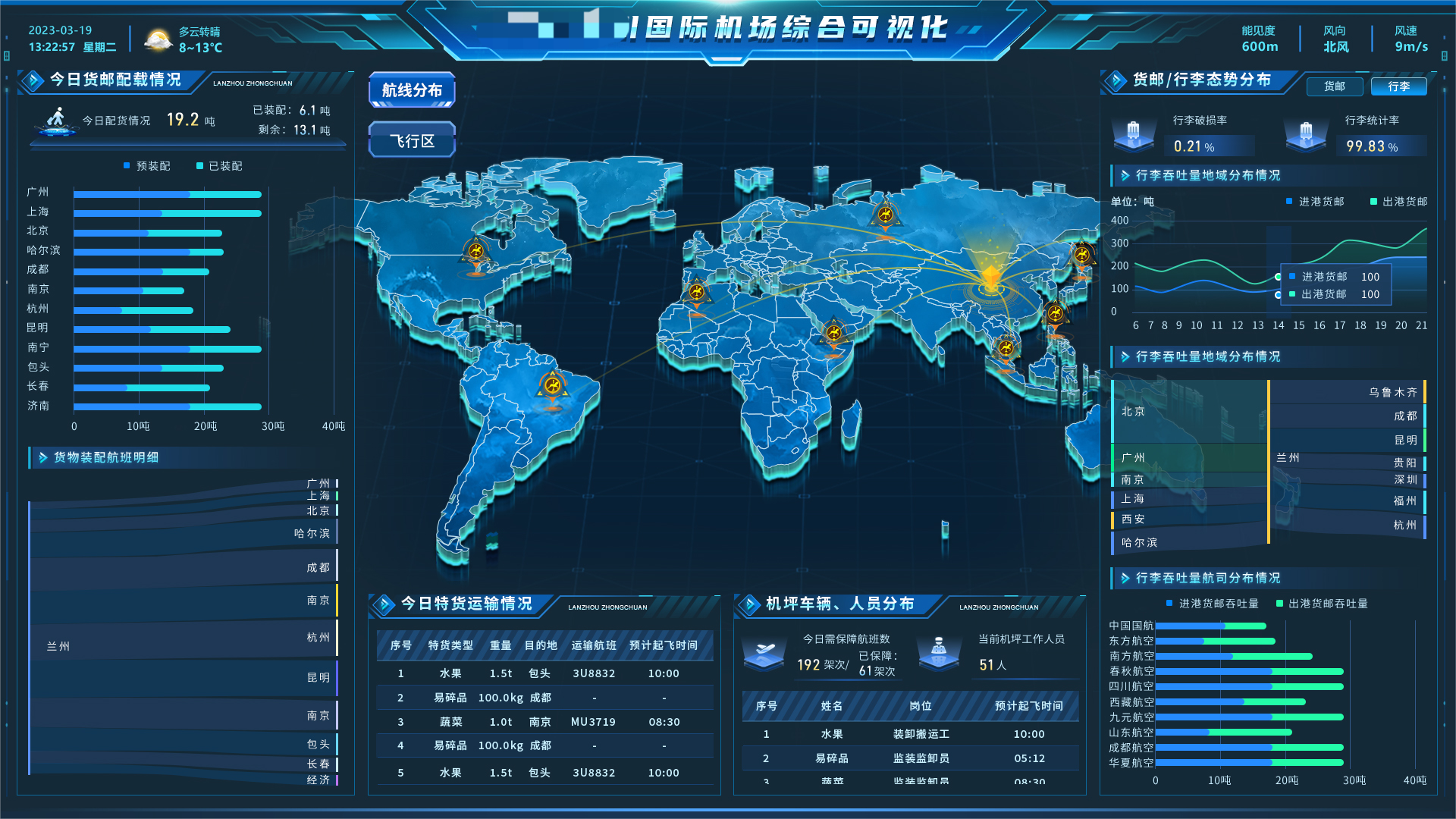 可视化业务应用,实现机场业务指标、协调处理的可视化实时展示,形象化展示整个机场的态势和场面。