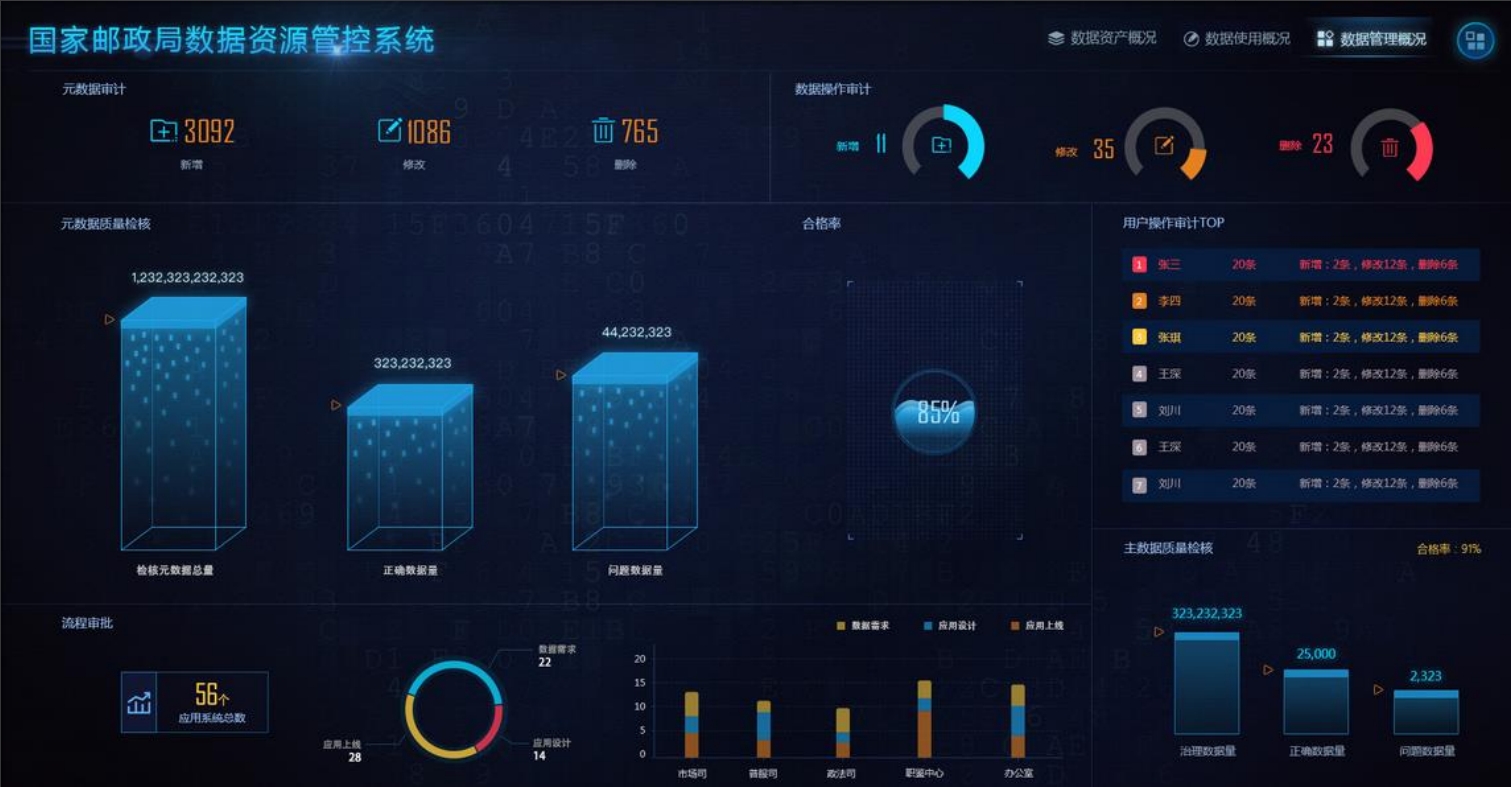 按照“统一规划、统一标准”原则,对本工程相关系统和国家邮政局相关系统的各项数据进行汇总、梳理、分析和归类,为消除“信息孤岛”、实现信息资源整合与应用系统集成 ,进行数据资源规划 ,并制定国家邮政局数据资源体系目录。