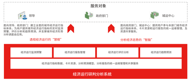 为了打破智慧城市IOC只能看不能用、应用不深、价值不明显等困局,在IOC能力体系基础上,探索跨部门全域数据应用场景。以支撑地方政府经济形势分析调度会应用场景为突破口,建设经济运行研判分析系统,建立地方经济运行监测预警、研判分析体系,辅助经济运行分析,以及经济指标完成情况报告的编制,提高经济运行报告的编制效率和质量,从而为领导决策给予全面、及时、准确、可靠的经济运行研判分析依据,提高经济运行监测分析的精准性、时效性和可视性。